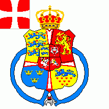 The quarters of the main shield are representing Denmark (1st), Norway (2nd), Sweden respectively the Kalmar Union (3rd) and Jutland (4th).