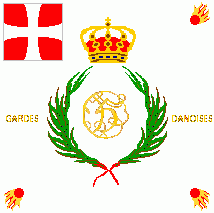 On centre is also a golden inscription flanking the wreath "GARDES" (hoist) "DANOISES" (fly) (= Danish Guards).