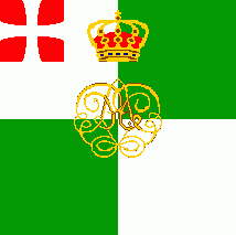 The cloth was quartered of white and green. In canton was the Danebrog, a red square parted by a white cross patty.
