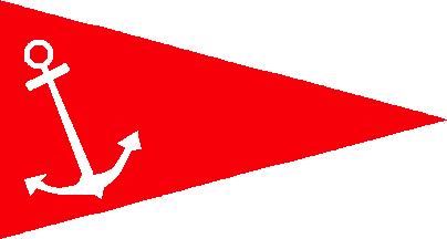The pennant is red. Shifted to hoist is a white initial "L" in a white annulet. Sometimes the pennant is fimbriated white (see right image above).