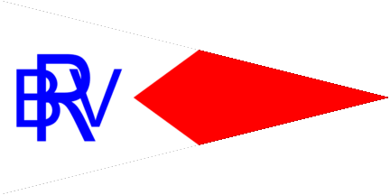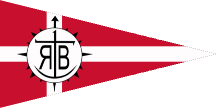 The pennant is parted per chevron pointing to hoist, on hoist white with blue intertwined initials "BRV" with bigger "R" and plain red on fly. The club is based in Roskilde.