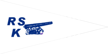 The pennant is white. At hoist is a red anchor in pale and below red initials "RS".