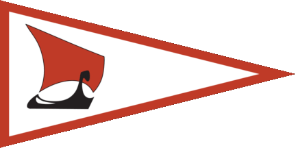 The pennant is white with red fimbriation and a black viking ship with red sail at hoist.