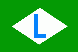 The flag was green with a blue initial "L" on a centred white lozenge.