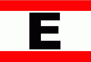 The company was based in København. The flag was horizontally divided of red-white-red. The white stripe had 4 times width and a black initial "E".