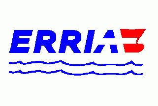 The company is based in København. The flag is white with blue inscription "ERRIA" in italics followed at fly by a red prow and underlined by two blue irregular wavy lines. After the company BR marine A/S had become a part of the Fabricius Group in 1992, it as renamed to Fabricius Marine and again on 20 April 2007 it became Erria.