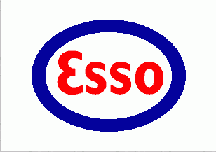 The 2nd flag is white with red inscription "Esso" surrounded by a dark blue ellipse, the well known logo from any Esso petrol station (see right image above).