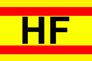 The company was based in Kongens Lyngby, aNorthern suburb of København. The flag was yellow parted by two horizontal red stripes. The central was broader with a black inscription "HF".