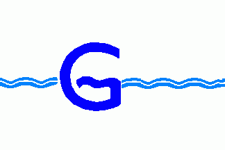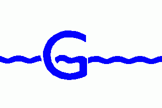 The company is based in Næstved. The 1st flag is white with horizontal blue wave, interrupted by a slightly wavy blue "G" (see left image above). The 2nd flag is the same but the blue wave was replaced by two thinner light blue waves (see right image above).