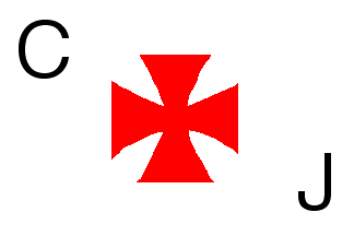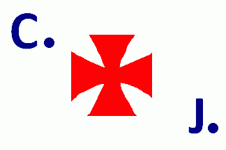 cross pattee, a black "C" in upper hoist and a black "J" in lower fly.