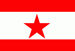 The flag was horizontally divided red-white-red with ratio of stripes 1:2:1 and a red 5-point star on the white stripe.