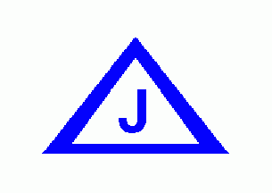 The company was based in København. The flag is white with centred blue isosceles triangle with blue initial "J" therein.