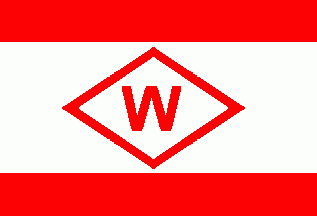 The company West Jutland Steamship Company was based in Esbjerg. The flag was a red-white-red horizontal triband with ratio of stripes 1:3:1 with red initial "W", surrounded by a white lozenge with red edges on central stripe.