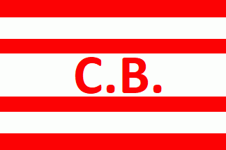 Renamed to Dampskibsselskabet Viking A/S the flag version, reported 1953, was red parted by three horizontal white stripes. The central stripe had double width and red dotted initials "C.B." (see right image above).