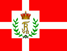 Regulations dated 25 March 1757 inserted a white panel with the Royal cypher to the intersection of the cross in the Danish flag for ships sailing in the Mediterranean. This was made necessary because of increasing Danish trade and the conclusion of treaties with the North African states, which on payment of tribute undertook to respect the flag of Denmark as long as it was distinguished from the flag of Malta. This variant civil ensign survived, with changing cyphers, until it was abolished in 1867.