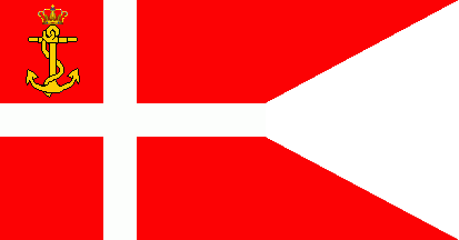 Politikens Flagbog and the Danmarksbog give for state vessels (not necessarily defensive/serving the ministry of defence) a splitflag with a white crown in the canton. Obviously there is some overlap in these categories. It may be that nowadays those flags are no longer naval red (orlogs rød) and have new imagery, but whatever the current state: Would those naval red flags have had the dimensions of the war flag (if there is indeed a difference)?