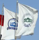 Two variations of flags for the "Misr University for Science and Technology" (MUST); it is a private university in the 6th of October City, Giza, Egypt. "Misr" is an Arabic word for "Egypt." The 6th of October City was founded in 1979; it was named after the 6th of October 1973, the day that the Yom Kippur War began.