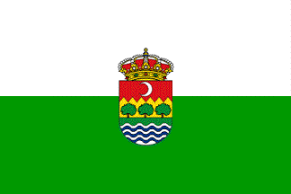 Coat of arms: Or three chestnut trees proper in fess on a base vert in base waves argent and azure the chief dancetty gules charged with a crescent argent. The shield surmounted by a Royal Spanish crown closed.