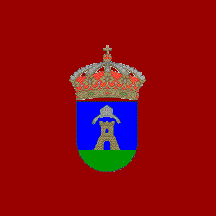 Coat of arms: Shield in Spanish shape. Azure a tower terraced vert ensigned with a mitre argent with infulae of the same. The shield surmounted with a Royal Spanish crown.