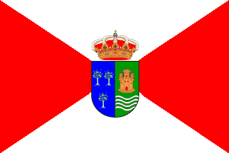 Flag: Quartered per saltire gules and argent [red and white] charged with the municipal coat of arms. The shield surmounted by the Royal crown of the Spanish Monarchy.