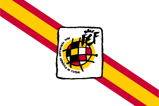 Former flags of the Royal Spanish Football Federation, two versions - Images by Luis-Miguel Arias, 14 November 2001, and Tomislav Šipek, 15 February 2019, respectively