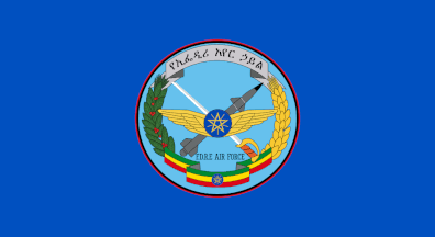 The Ethiopian Air Force has a plain blue flag with Air Force emblem placed in the centre of the flag.