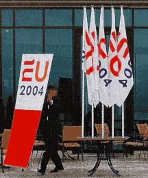 Unie in 2004 werd gebruik gemaakt van een vlag met het logo van het