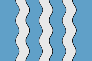 The flag is a banner of the municipal arms,"Azure three pallets wavy argent", adopted by the Municipal Council on 18 June 1988.