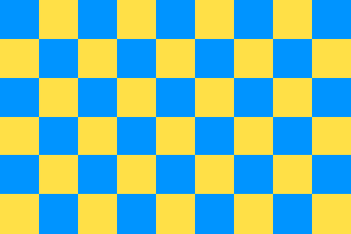 The flag of Donges (photo) is a banner of the municipal arms, "Checquered or and azure", which were the arms of the first Viscounts of Donges.