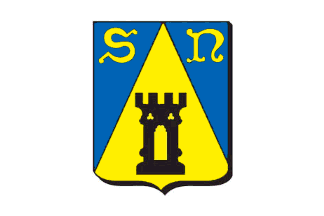 The flag of Cuvry (photo) is white with the municipal coat of arms, "Or a tower sable, chapé azure the uncial letters 'S' and 'N' or".
