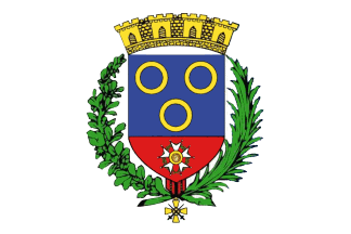 The arms of Chalon-sur-Saône are blazoned: Azure, three annulets Or, the terrace in base Gules charged with the cross of the Legion of Honor proper.