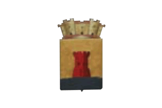 The arms are "Or a tower gules masoned sable on a base vert". They form