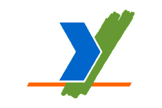 "Y" whose base is pierced by an horizontal orange stripe. The blue