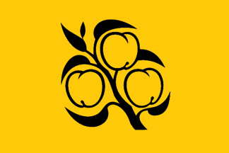 The [former] flag of Bagnolet (photo) [was] dark yellow with a branch of peach tree. The branch and the six leaves are black, while the three peaches peaches are dark yellow with a black border.