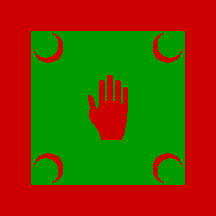 These pennnants were adorned with the hand of Fatima and a crescent in each corner, of the color green for the four battalions.