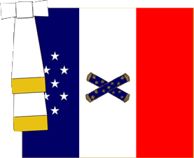 The flag of a Marshal of France is a square white flag with the French Tricolore in canton and two crossed blue marshal's batons in lower fly.