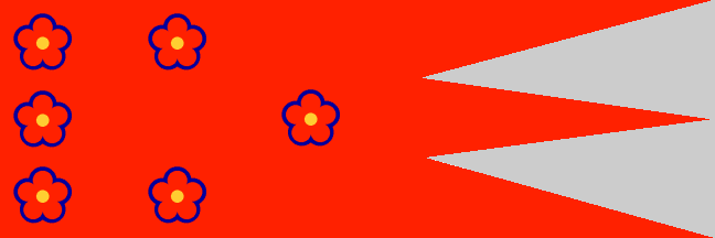 Several flag books (for instance, Inglefield's Flags [ing 79]) depict the uriflamme of Charlemagne, as an elongated, bright orange-red gonfanon, with orange-red flowers bordered in blue and the center yellow.