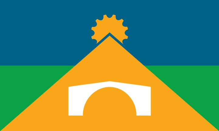 The Telford flag represents the iconic Ironbridge, a sun/cog as a nod to the Borough’s industrial heritage and the colour green to represent the many wonderful green and opens spaces available.