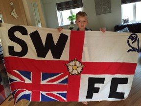 The first of these two flags is a commercial offering, but the second is an example of a home-made Sheffield Wednesday fan flag, obviously a one-of-a-kind.
