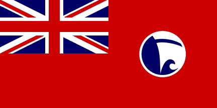 Ensign: British Red, defaced on the fly with the NRVH's badge: a white-edged blue disk enclosing a stylized blue wave and white sail.