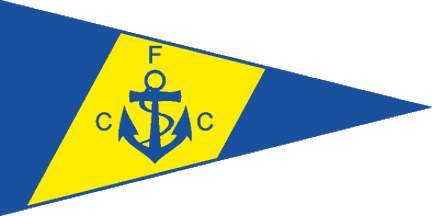 bend sinister, width 1/3 of fly; superimposed with a blue fouled anchor with