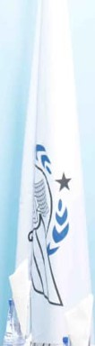 shows a white flag with the logo centered.