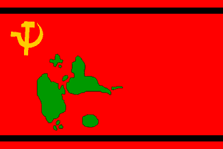The flag used by PCG is similar to the second flag used during the VIIth Congress; the white disk is suppressed and the yellow hammer and sickle is placed in the upper left corner.