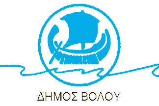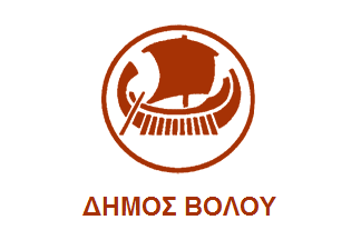 The flag of Volos (photo) is white with the municipal seal - a white disk containing a Greek boat - in brown and the words "ΔΗΜΟΣ ΒΟΛΟΥ" (Municipality of Volos) below.