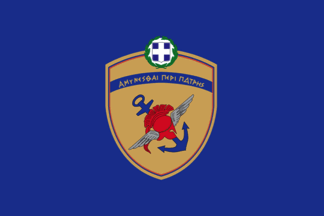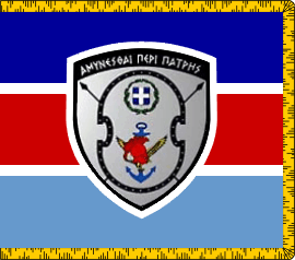 The motto, written in archaic script, reads ἀμύνεσθαι περὶ πάτρης, "To fight for one's country".