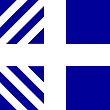 cross and three white rising diagonal stripes in the first quarter. This flag is prescribed by Royal Decree of 31 May 1914.