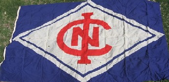 Picture taken from clickable photo for the moment named (LUOP): dark blue field bearing a white diamond, fimbriated dark blue, in the centre red entwined initials "CNI" (the "N" inside  the "C" and the "I" extending beyond the "C").
