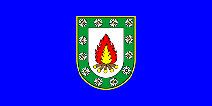 The flag was in proportions 1:2, blue with the coat of arms in lower fly.