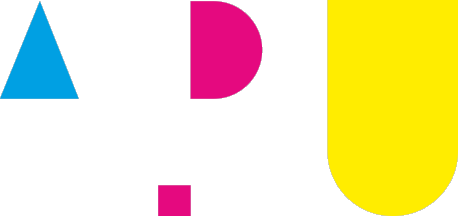 The Academy, however, uses an emblem consisting of geometric shapes "voiding" the initials "APU" in cyan (up-pointing isosceles triangle), magenta (semicircle and square) and yellow (upright rectangle with