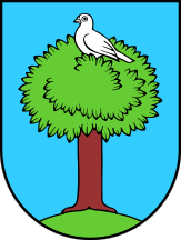 The coat of arms of the municipality of Krašić is the historical coat of arms of the municipality of Krašić in the shape of a semicircular, blue shield in which on a green mount is set a tree - proper (brown trunk, green top), and at the top of it sits a white dove.